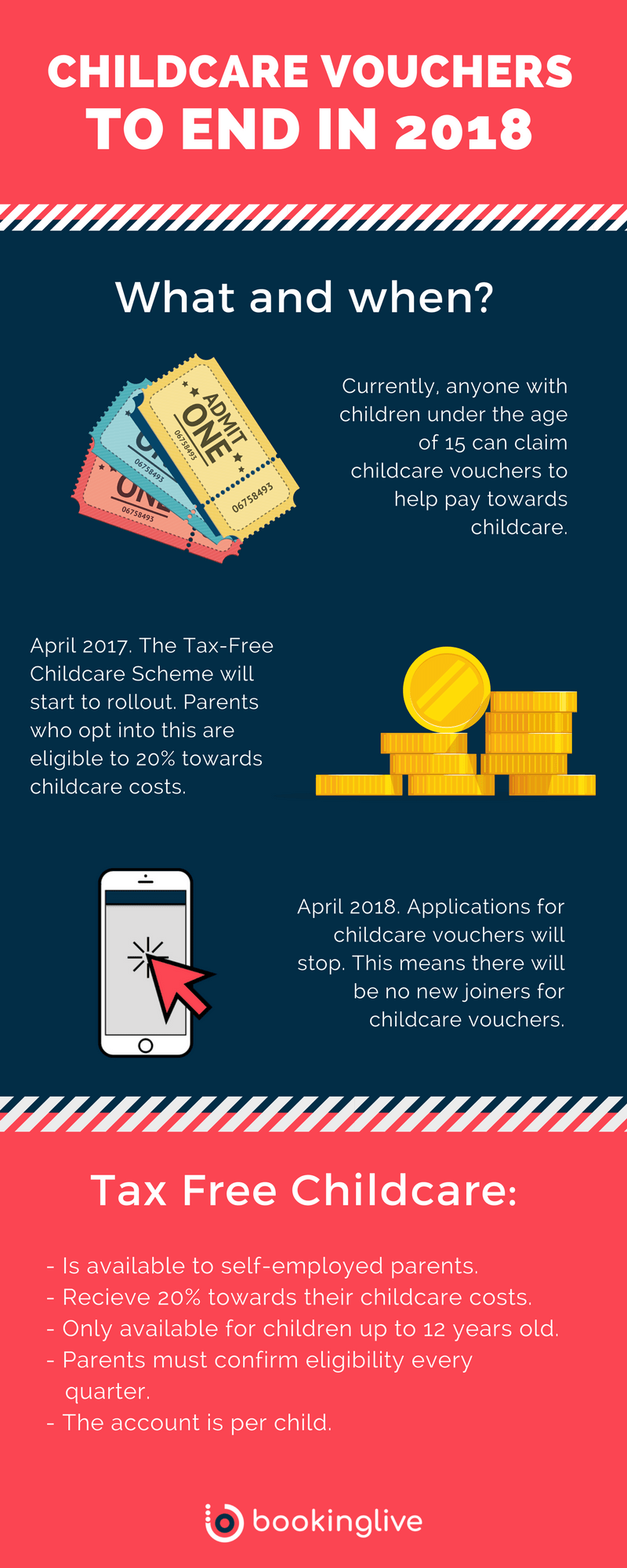 In October 2015, BookingLive introduced a way for childcare providers like schools, nurseries and after-school clubs to accept childcare vouchers as a form of payment for their customers who chose to book online.